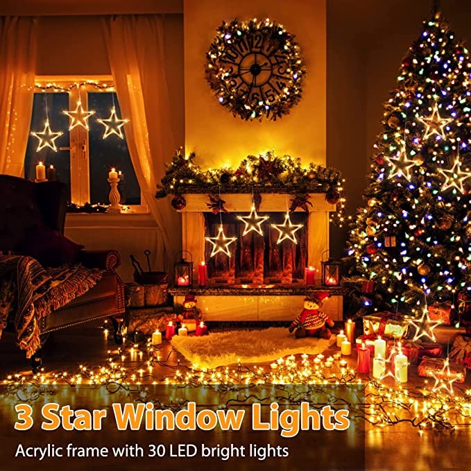 GlobaLink Christmas Star Window Lights, 3Pack 30LEDs Battery Powered Timer Window Star Hanging Lights, Waterproof Backdrop String Lights with 8 Modes for Indoor Outdoor Home Bedroom Party - Warm White