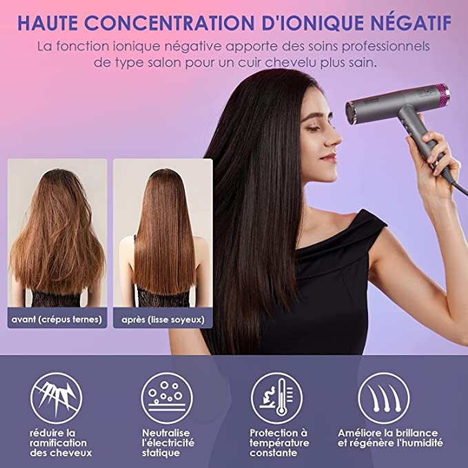 Hair Dryer, Professional Hair Dryer, Negative Ion Hair Dryer, 3 Magnetic Diffusers, Quick Dry, 4 Temperature Settings for Restorative Hair, Living Room Hairstyle.