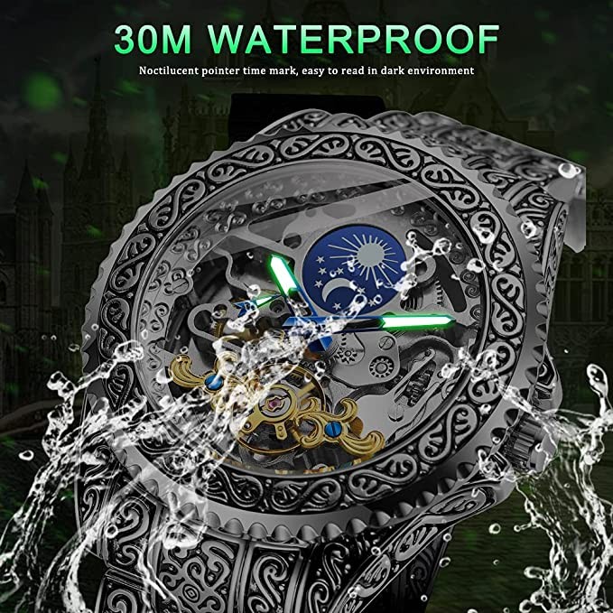 Mechanical Men's Watch Fashion Automatic Men's Clock Blue Stainless Steel Waterproof Business Skeleton Watch