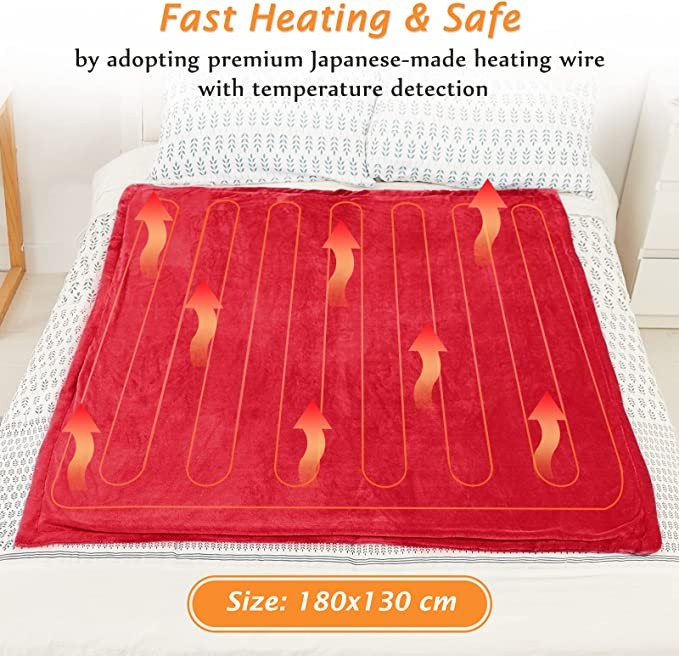 Mia&Coco electric blanket throwing flannel Sherpa fast heating 180x130cm, 10 speed heating level and up to 9 hours automatic off timer and LED display, suitable for home office use, machine washable,
