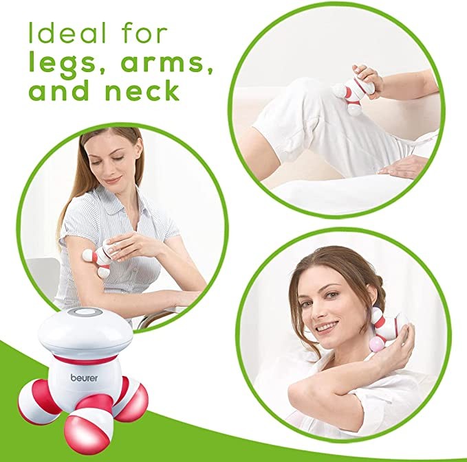 Beurer Handheld Mini Body Massager with LED Light, Soft and Comfortable Vibration, Easy Grip Handle, Portable, Gentle Pressure Point Massage, Massage Tool Easy Palm Fit, Battery Included, MG16