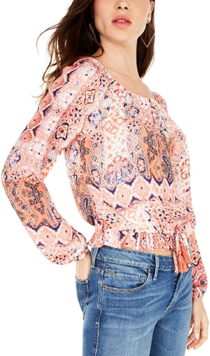Guess Avah Fringe Lace-Up Top - Lava Tile Print Size M