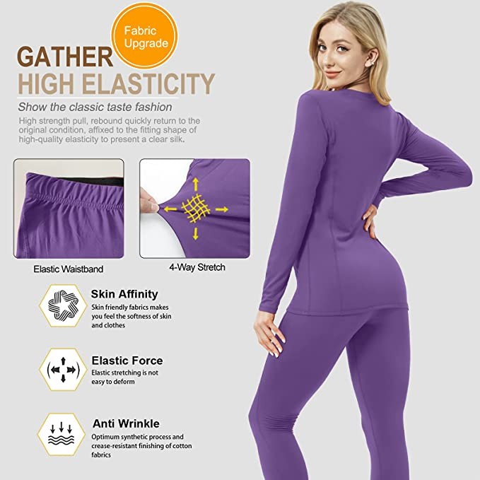 • 【Suitable for many occasions】Women thermal shirts and pants are not only suitable for wearing at home or as pajamas, but also perfect for outdoor activities such as hiking, cycling, marathon, motorcycle, running, climbing, training, yoga, snowboarding, hunting and fishing.