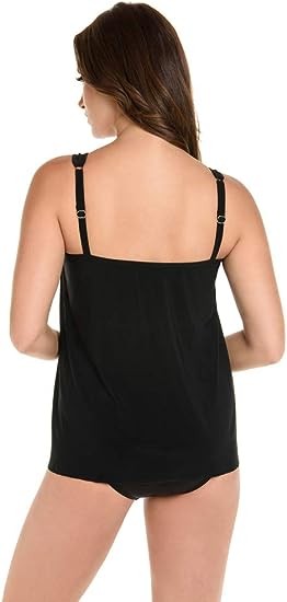 • Adjustable straps allow you to customize the fit to your unique shape. Gentle draping effortlessly conceals extra pounds in your midsection.
