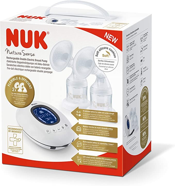 NUK Nature Sense Electric Double Breast Pump | With Battery, LCD Display 2 x 150ml* Containers