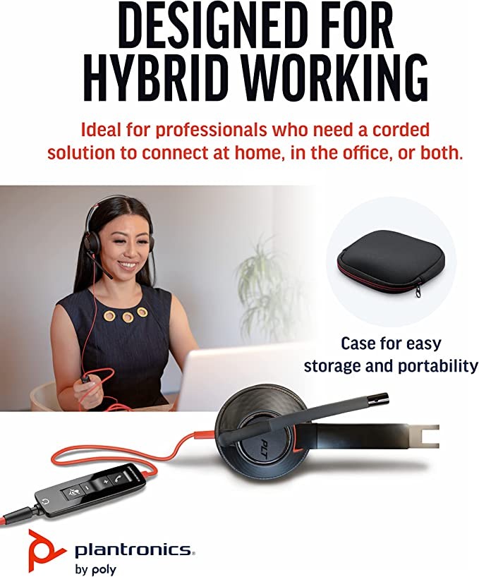 Poly Blackwire Plantronics Plantronics 5220 USB-A Headphones - Wired, Binaural, Flexible Noise-Cancelling Boom Microphone - Ergonomically Designed All Day - Connects PC/Mac via USB-A or 3.5mm for Mobi